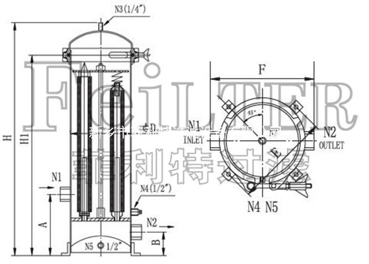 保安過濾器主要由過濾外殼,過濾濾芯等組成,過濾外殼大部分由R304不銹鋼材料組成,如用在耐酸堿等特殊場合則可采用R316不銹鋼做外殼??煞譃榉ㄌm式與卡箍式,而法蘭式外殼主要用在過濾流量較大的場合。過濾濾殼中間裝的過濾濾芯主要以PP過濾棉芯為主,有些場合也可選用線繞濾芯或活性炭濾芯。濾芯的安裝數(shù)目可從一支到幾十支不等,主要是根據(jù)處理量的大小來確定。 ![]()
