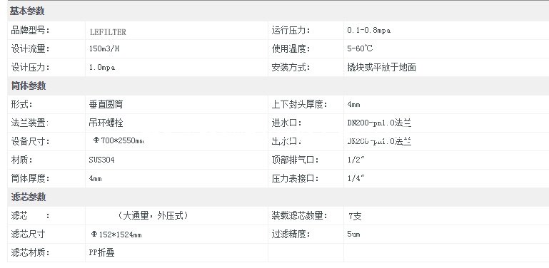 (5)大流量保安過濾器濾芯材料潔凈度高,對過濾介質無污染;
