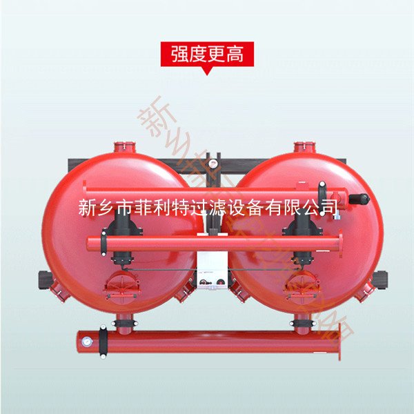4、過濾器外殼由不銹鋼、鋼材膠或全塑構成,具有效高的壓重比和耐腐蝕,一體成型的球形外殼,可承受0.59Mpa的壓力。