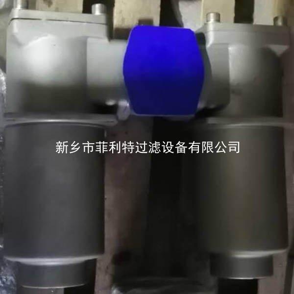 3、由兩個單筒回油過濾器通過一個可切換的三通球閥連接而成;