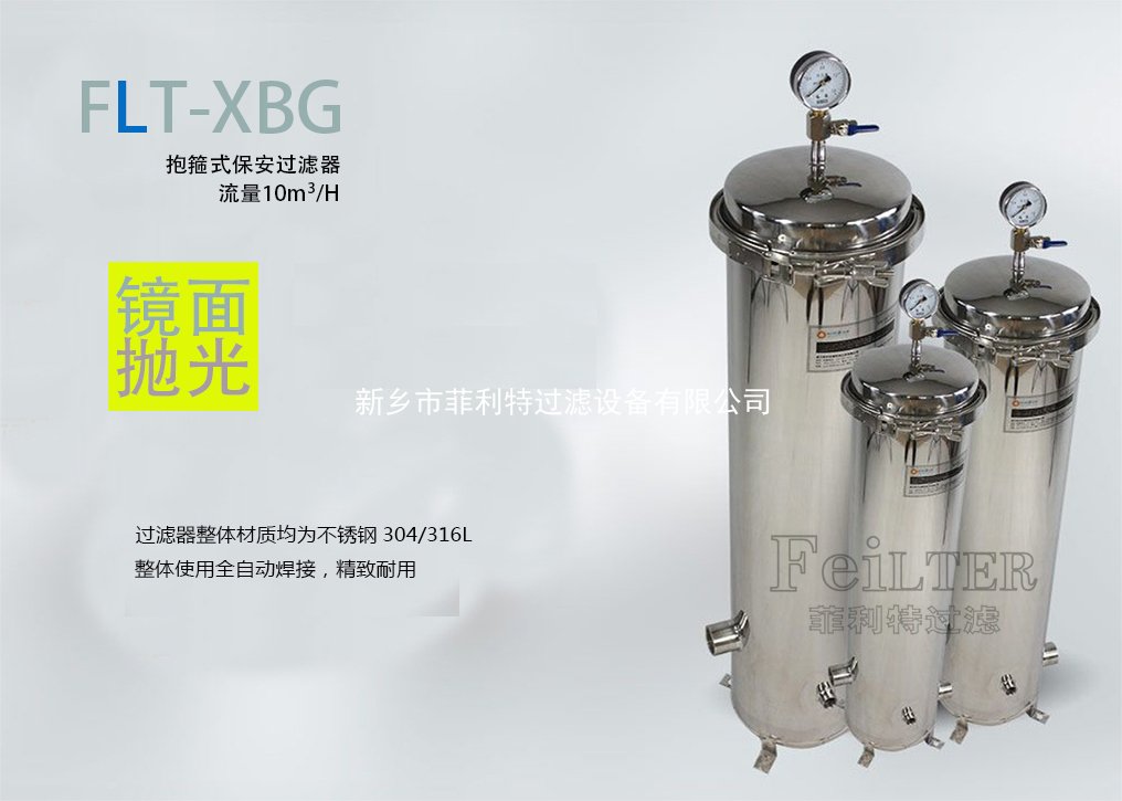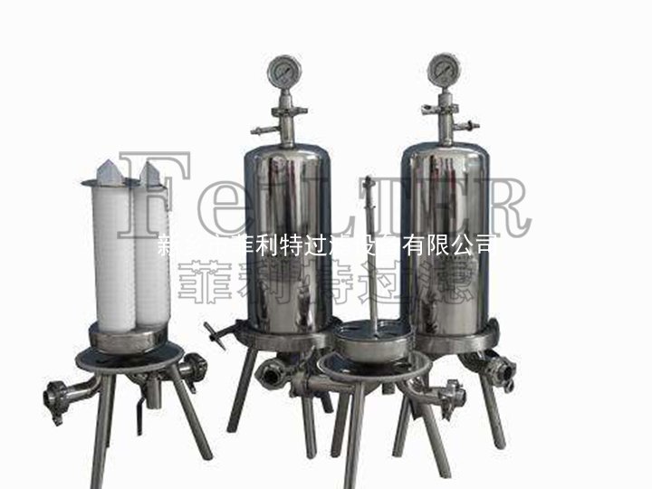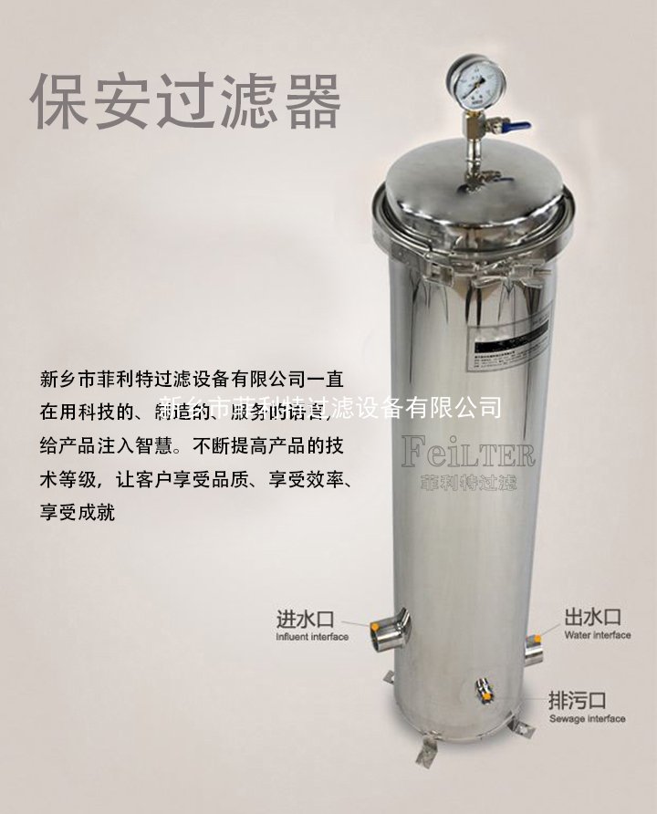 精密過濾裝置(也稱作保安過濾器)大都采用不銹鋼做外殼,內(nèi)部裝過濾濾芯(例如PP棉),主要用在多介質(zhì)預(yù)處理過濾之后,反滲透、超濾等膜過濾設(shè)備之前。用來濾除經(jīng)多介質(zhì)過濾后的細(xì)小物質(zhì)(例如微小的石英沙,活性炭顆粒等),以確保水質(zhì)過濾精度及保護(hù)膜過濾元件不受大顆粒物質(zhì)的損壞。精密過濾裝置內(nèi)裝的過濾濾芯精度等級可分為0.5μs,1μs,5μs,10μs等,根據(jù)不同的使用場合選用不同的過濾精度,以后出水精度及后級膜元件的安全。